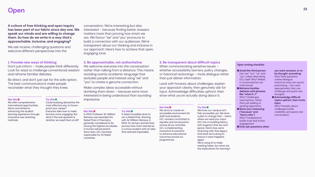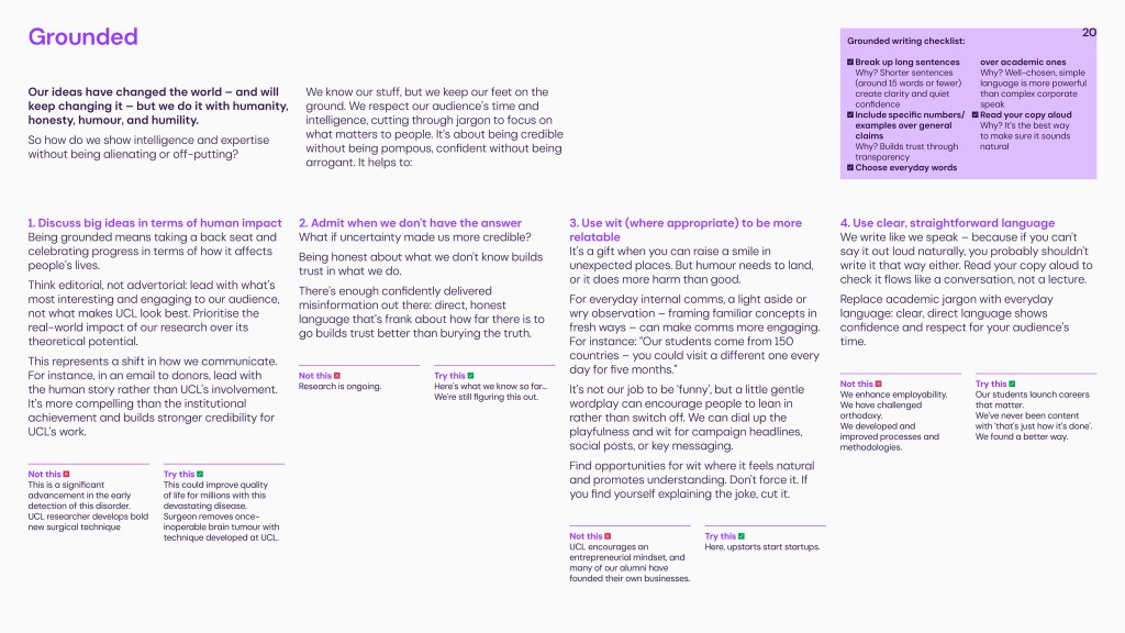 I collaborated with Johnson Banks to give University College London (UCL) a new brand voice, translating strategic traits into detailed, practical writing guidance.